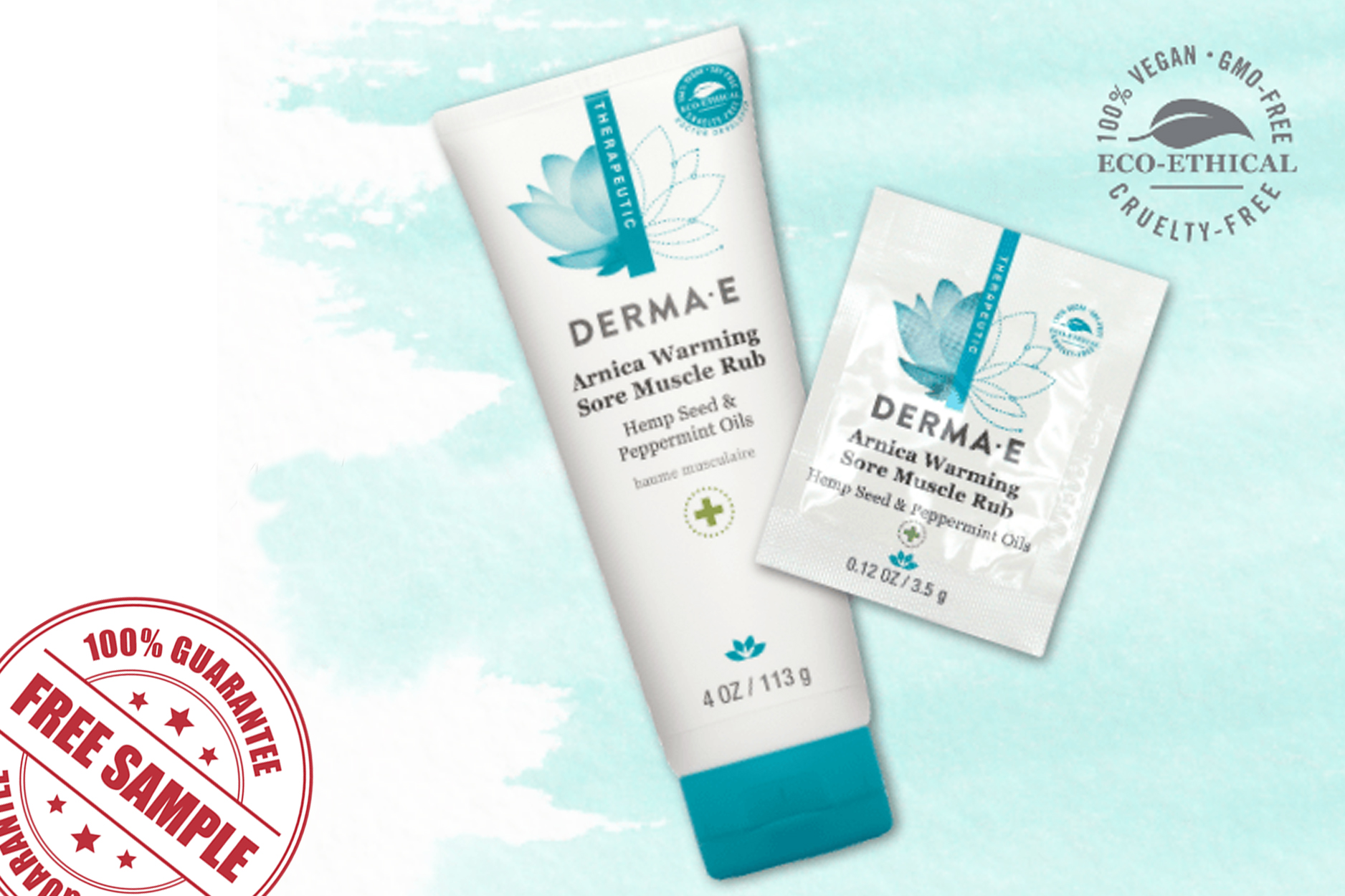 DERMA E’s Arnica Warming Sore Muscle Rub is 100% Vegan and cruelty free and does not contain parabens, sulfates, mineral oil,lanolin,gluten or GMOs. FAST-ACTING muscle rub to help comfort overworked muscles by helping to soothing the desired area. Our therapeutic muscle and body rub moisturizes to help comfort overworked muscles by helping to soothe the desired area. Formulated with a unique blend of wild-crafted Arnica Flower Extract, Peppermint Oil and Hemp Seed Oil for a warming comfort. Enriched with: Arnica Flower Extract is an alpine herb that tones, tingles and conditions the skin. Peppermint Oil has cooling and soothing properties. Hemp Seed Oil helps keep the skin moist, nourished and supple. This deeply penetrating soothing cream is fast absorbing and non-greasy, providing temporary relief after-sports, work or play. Free of colorants and raw materials derived from mineral oils.