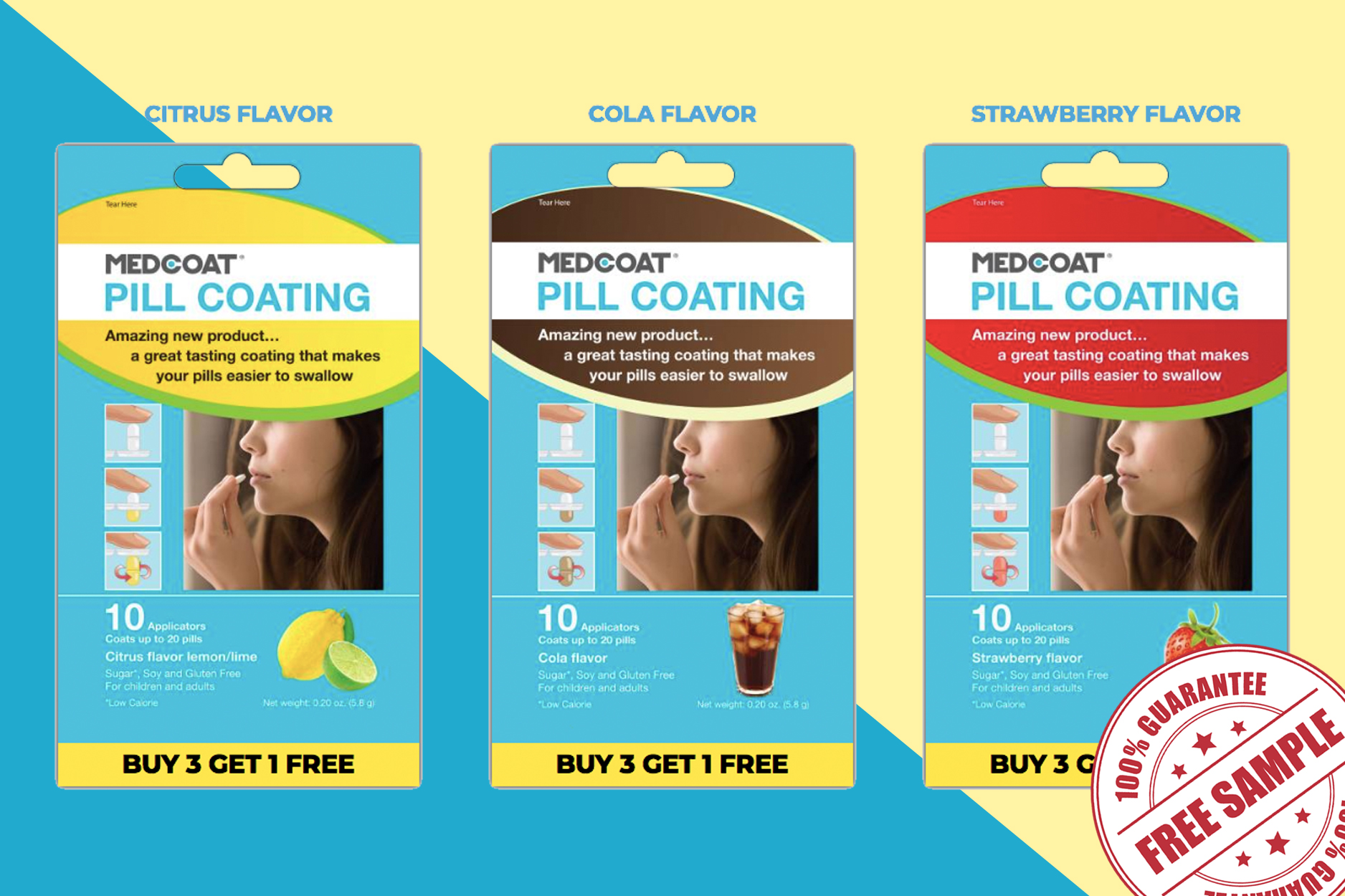 MEDCOAT® is an amazing new product that will revolutionize the way you take medications. MEDCOAT® covers pills and capsules with a coating camouflaging the bad taste of any medicine. It’s sugar, soy, and gluten free. This coating stimulates saliva production aiding in the swallowing process. The special coating applicator is easy to use and can work on any size shaped pill or capsule. MEDCOAT® alleviates the need of crushing tablets or adding flavoring which can alter medicines efficacy. The coating also masks the taste of pills and gives them a refreshing taste. The coating dissolves quickly after intake and contains only food classified ingredients. Each coating device can be used to coat up to two pills depending on the size. When only one pill should be taken per occasion a new device should be used for each pill. Swallow the coated pill together with recommended amount of water shortly after the coating is applied. MEDCOAT® can be used for pills and capsules of different sizes and shapes that should be swallowed, also for divided pills. For best result use MEDCOAT® in room temperature. Used devices can be detached from the card.