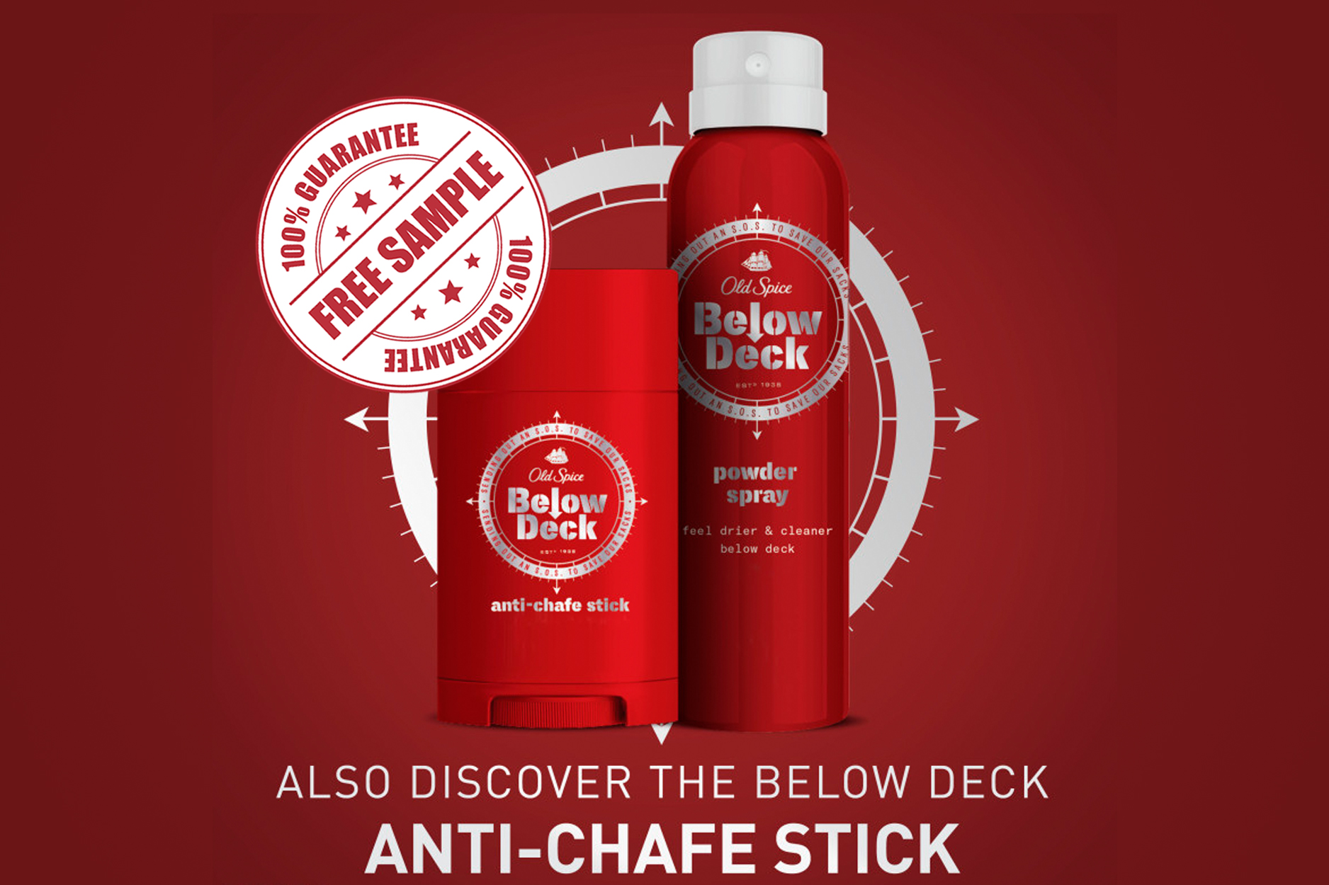 Old Spice Below Deck Powder Spray helps your most precious cargo feel drier and cleaner and do away with the mess of loose powder with our moisture-absorbing powder spray. Free of things you don’t want on your underbits, like talc and aluminum. Use daily after showering or on the go for a fresh, clean feeling. Old Spice Below Deck Anti-Chafe Stick reduces friction and goes on smooth. Old Spice Anti-Chafe Stick is a balm designed with a smooth and non-greasy formula that works hard to reduce chafing below deck. Reduce the uncomfortable feeling of the chafing with the one stick you won’t mind taking to your crotch.
