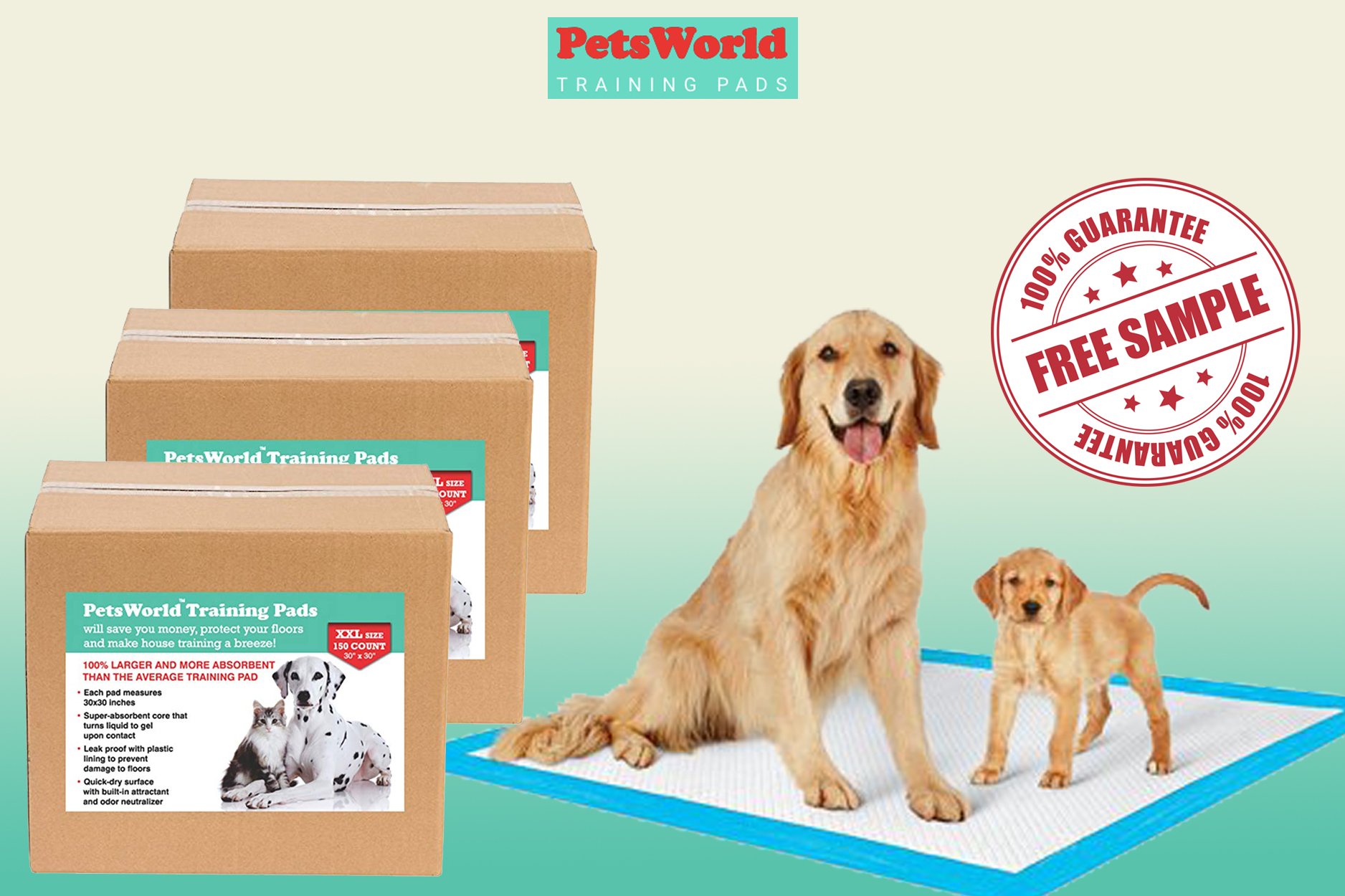 Dealing with puppy mess after a long day at work is frustrating! Pets World makes puppy mess clean up a breeze. Pets World training pads are a great solution for quick clean ups and protecting your floors from your new pup. Our high quality trainings pads are not just for young pups they are also a great solution for elderly dogs that are dealing with incontinence.