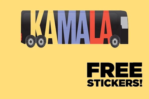 Send away for a free Kamala Harris Bus sticker! Available while supplies last!